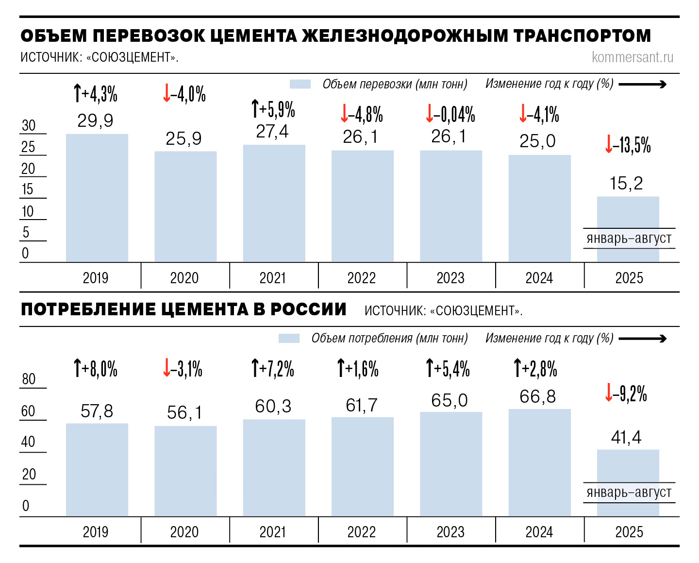 В пресс-службе РЖД также говорят о проблеме инфлированных заявок. Компания резервирует ресурсы, хотя заказы не обеспечены ни наличием груза, ни подтвержденными вагонами. Законопроект предусматривает, что грузоотправители будут согласовывать заявки с операторами составов до подачи в РЖД. Смена оператора, по мнению монополии, должна быть исключением, возможным лишь по его собственной инициативе. Изменения позволят справедливо распределять дефицитные мощности, особенно на критически важном восточном направлении, говорят в пресс-службе РЖД. Председатель комитета по транспорту и логистике «Союзцемента» Денис Назаров говорит, что процесс согласования заявок на перевозку грузов железнодорожным транспортом и внесения в них изменений регулируется гражданским законодательством. Договоры уже предусматривают необходимые механизма ответственности. Мера может усложнить и замедлить процессы, создав риски срыва графика поставок, считает он. В «Союзцементе» поясняют, что сейчас грузоотправители обычно подают заявки операторам за десять дней: на подсылку вагонов внутри страны уходит неделя. В РЖД заявки должны быть поданы за 10 дней до начала месяца перевозки при внутреннем сообщении и за 15 — при международном. По обычным направлениям процесс согласования обычно занимает три-пять дней и редко предполагает сложности. Но в случае лимитирующих сроки доходят до 14 дней, в последних числах месяца грузоотправители сталкиваются с отказами либо необходимостью внести коррективы. Изменения в ранее поданные сведения обычно согласовываются с РЖД на местном уровне и не предполагают участия владельца вагонов. Новый порядок увеличит процесс согласования как минимум на день, считают в «Союзцементе». В организации обращают внимание на то, что в проекте поправок не зафиксированы предельные сроки согласования и основания отказа. Это может затянуть сроки согласования операторами из-за, например, стремления оказать ценовое давление. Согласовать перевозку по лимитирующим направлениям в случае внезапного отказа станет фактически невозможно, а сроки простоя вагонов из-за более длительного процесса согласования вырастут, говорят в «Союзцементе». Господин Назаров считает, что поправки в Устав железнодорожного транспорта снизят конкурентоспособность перевозок. Значимость этого пути для цементного рынка в последние годы сокращается. Исполнительный директор СМПРО Евгений Высоцкий говорит, что в сентябре 2025 года по железной дороге перевезли 32,5% цемента. В начале года этот показатель достигал 39%, а 20 лет назад оценивался в 70%. Постоянное снижение доли в пользу автомобильных перевозок эксперт связывает с более высокими тарифами и низкой скоростью доставки: по железной дороге цемент идет в два-три раза медленнее, чем по шоссе.